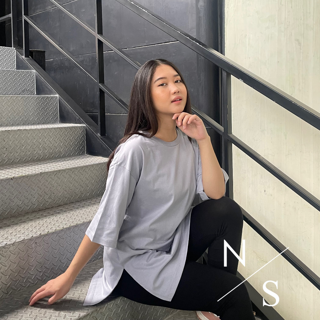 Kaos Oversize Wanita Katun Combed High Slit