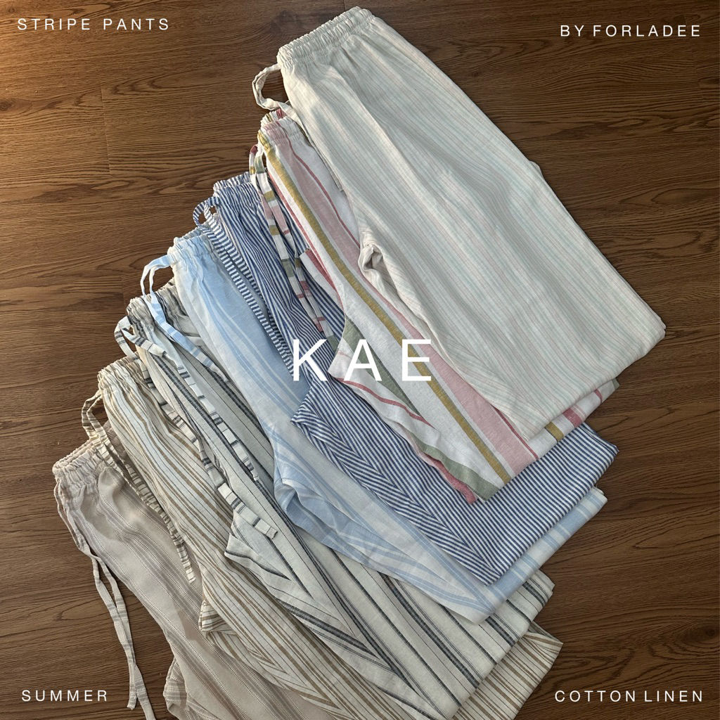[New Launch] READY Kae Stripe Linen Pants | Celana Kulot Salur | Celana Panjang Wanita Garis | Celana Santai | Beach Pants | Loose Pants