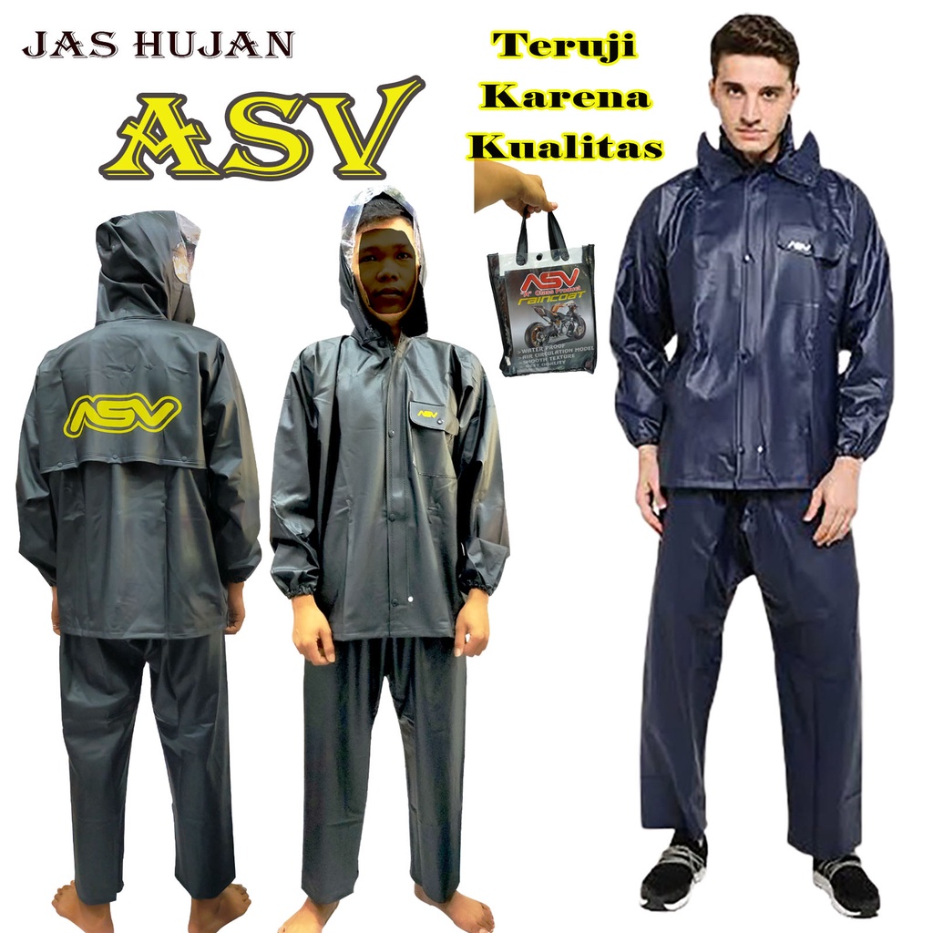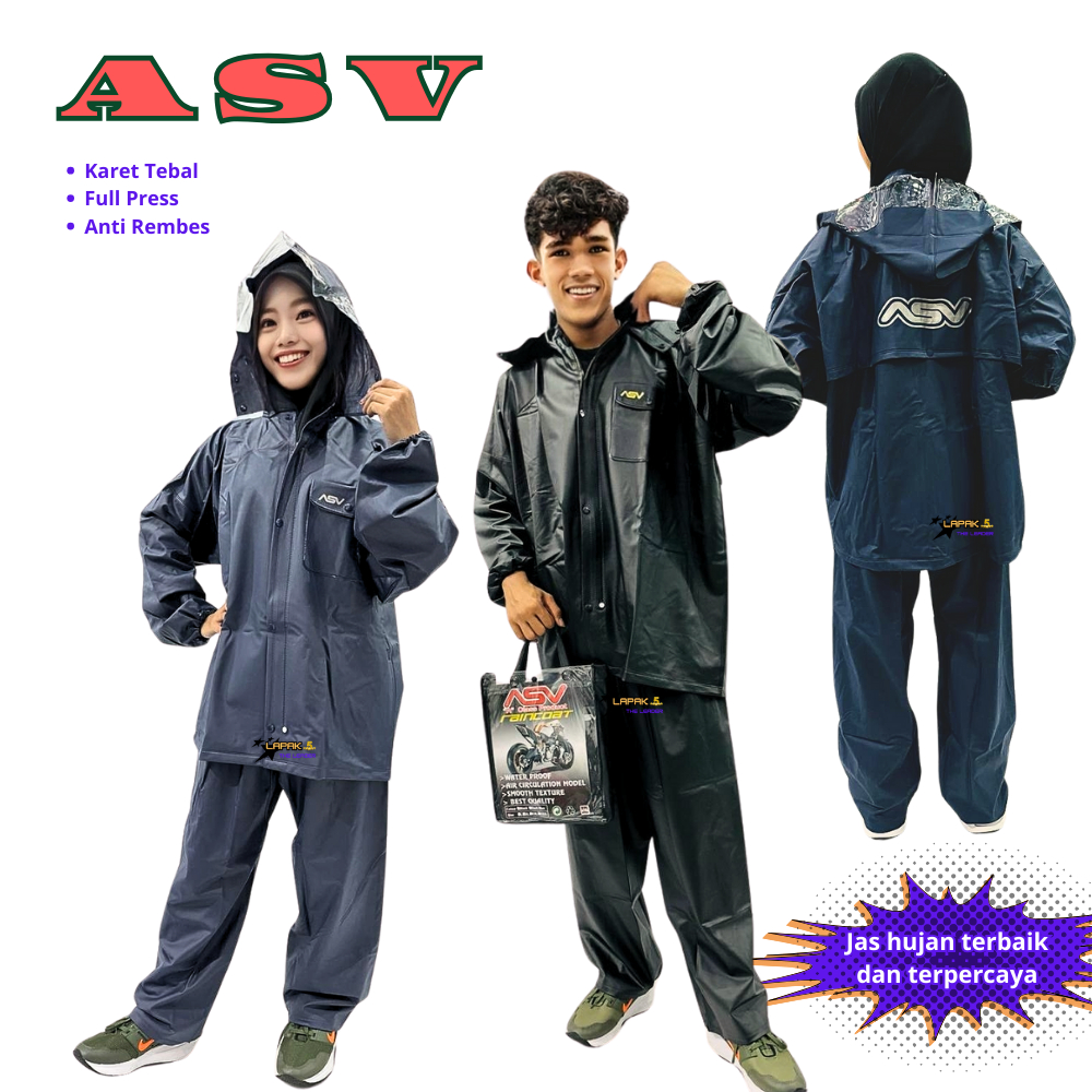 Jas Hujan Baju Celana Setelan Dewasa Pria Wanita ASV Original Full Karet Rubber Press Anti Rembes