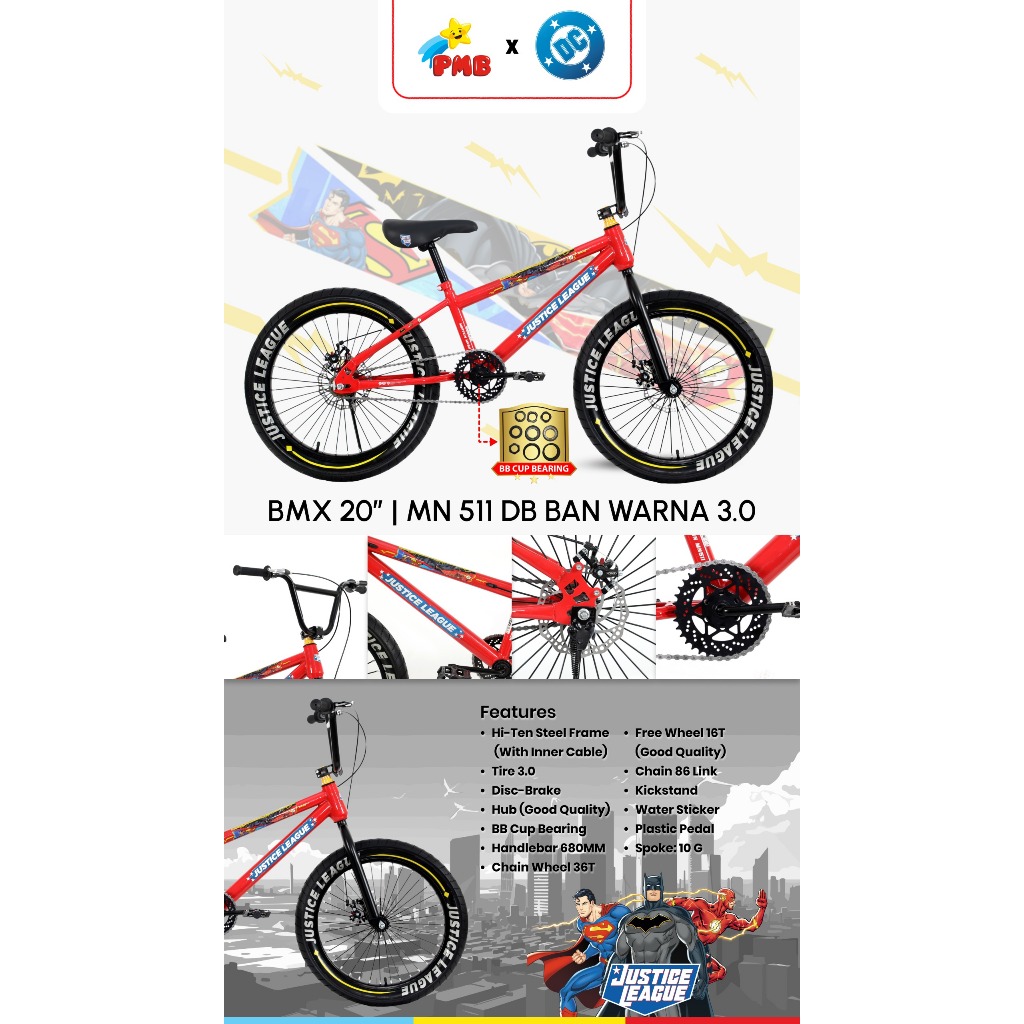 Sepeda 20 BMX MORTEIN SUPERMAN Disc Brake - Vbrake BAN JUMBO WARNA 3.0 - 2.40 UNTUK ANAK Laki usia 8 tahun - Remaja