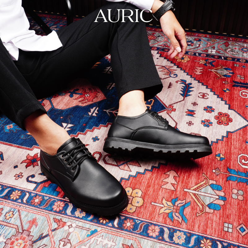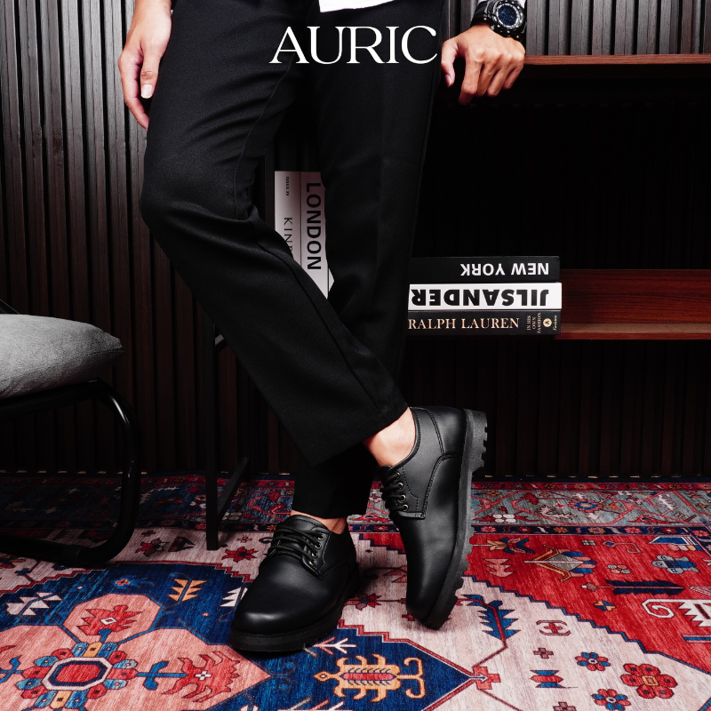 AURIC - East Black Sepatu Formal Pria Wanita Casual Kerja Kantor Semi Kulit Simple Basic Hitam