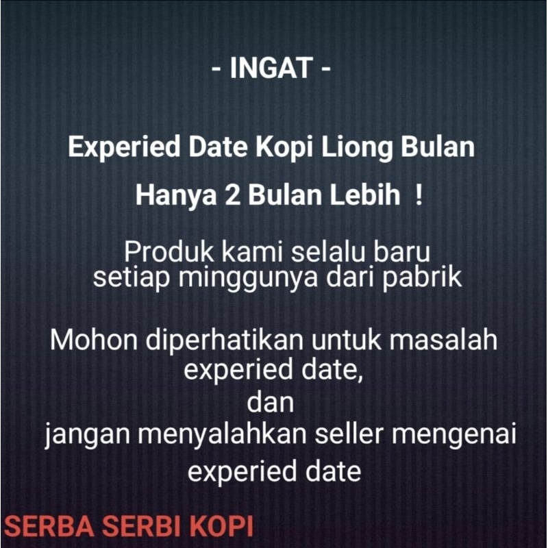 KOPI LIONG BULAN TANPA GULA ISI 30 PCS/ PACK