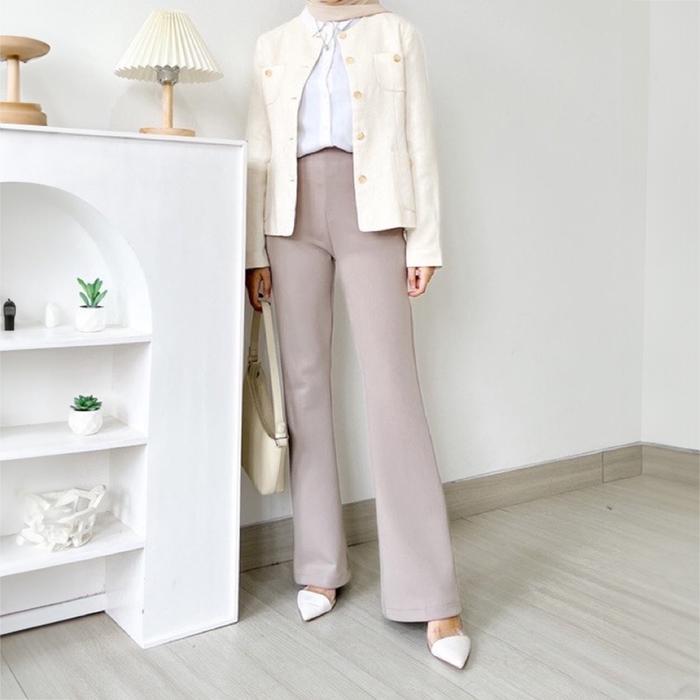 Kawisari - Evelyn Flare Pants Scuba - High Waist Cutbray Pinggang Karet Premium Celana Panjang Wanita Fit Kaki Nyaman -