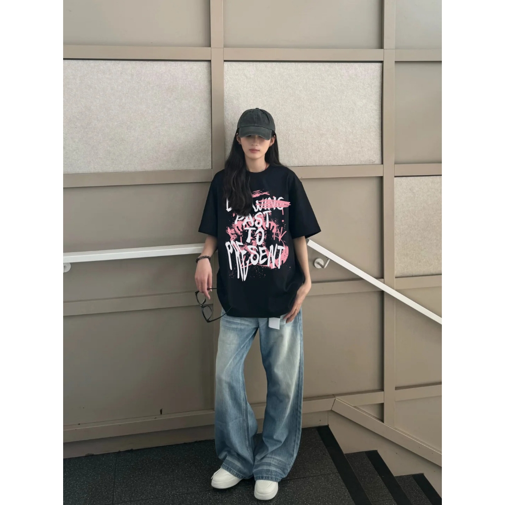 [ ]HW.t-shirt Oversize Tshirt Pink Alphabet Graffiti baju big size kaos korea | Kaos baju Wanita pria/210