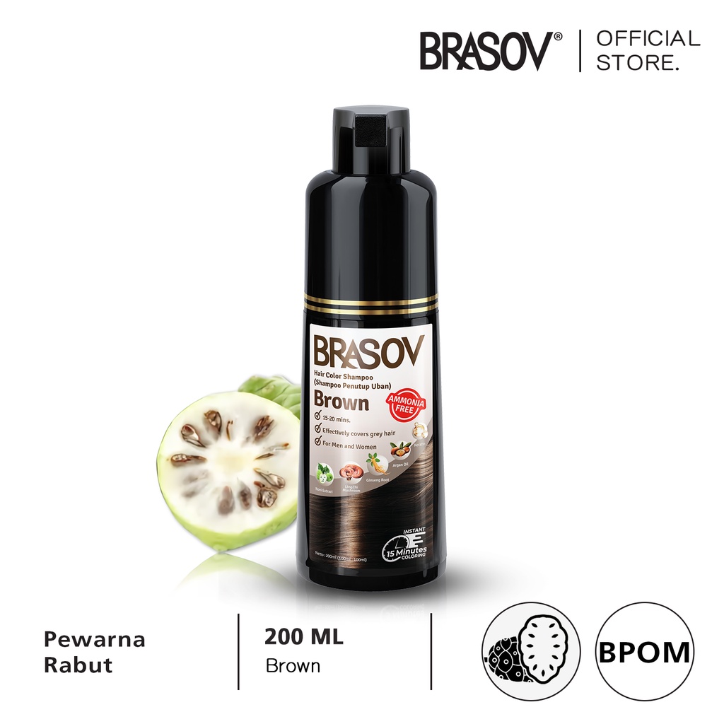 BRASOV Shampoo Pewarna Rambut 200 ML Ammonia Free Hair Color Shampoo Penutup Uban BPOM XX-CT