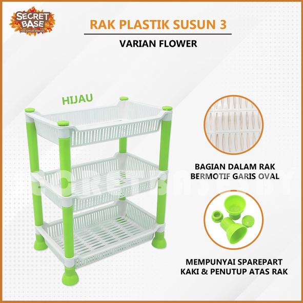 Rak Tingkat Segi Flower 3 Susun - Beli Lokal / Rak Mini / Rak Bumbu / Rak Kosmetik / Rak Plastik - Cappucino