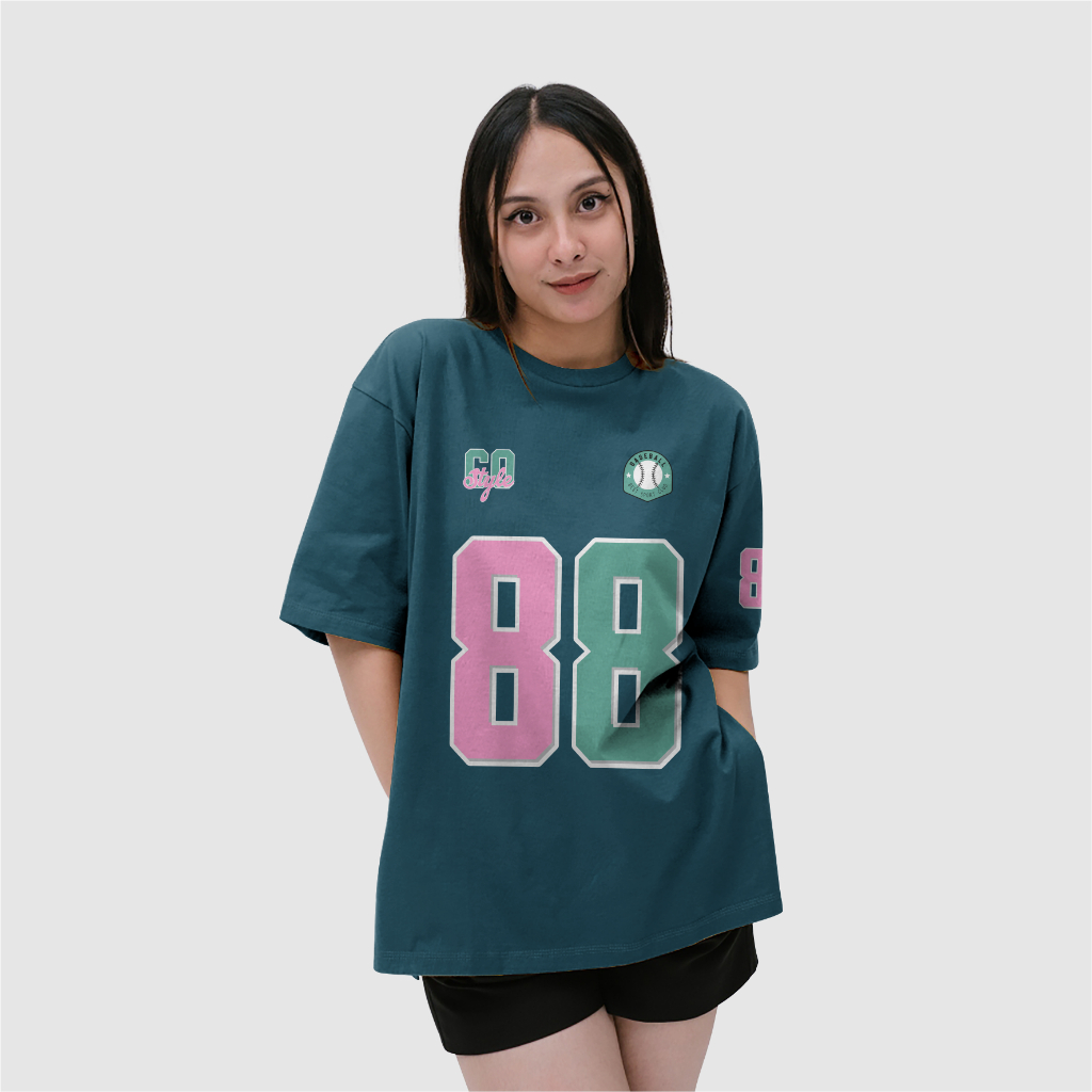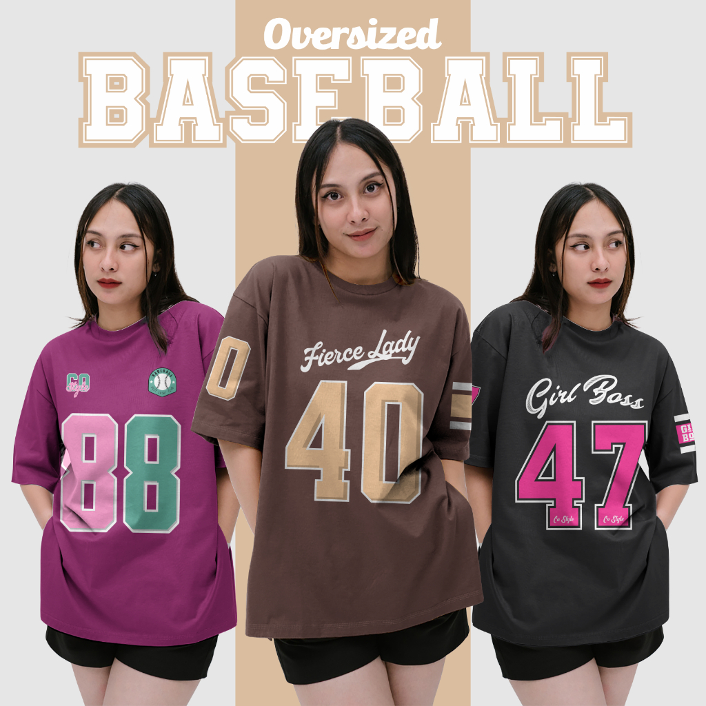 Co.Style Kaos Oversize Wanita Baseball Jumbo Lengan Pendek / Atasan Sporty Cotton Combed