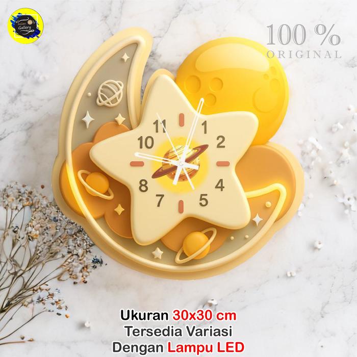 JAM DINDING UKIR HOME SWEET HOME BUNGA MATAHARI HIASAN DINGDING RUANG TAMU/ KAMAR TIDUR - BINTANG SATURN , JAM + LAMPU