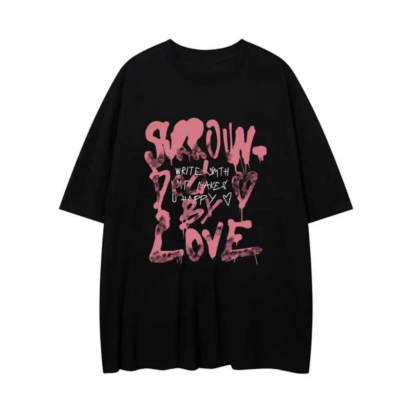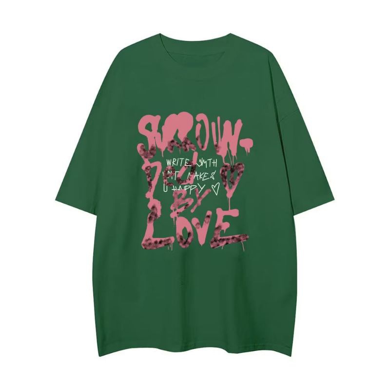 kaos Oversize Wanita / Motif Korean Style Pink English / Kaos Distro Wanita / Streetwear Oversize / Kaos