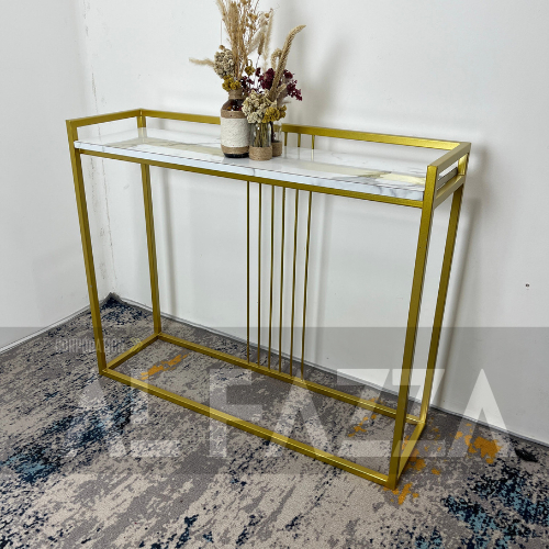 Meja Console Alexa Meja Minimalis estetik Modern Meja Industrial motif Top Marmer Besi ruang tengah mewah murah