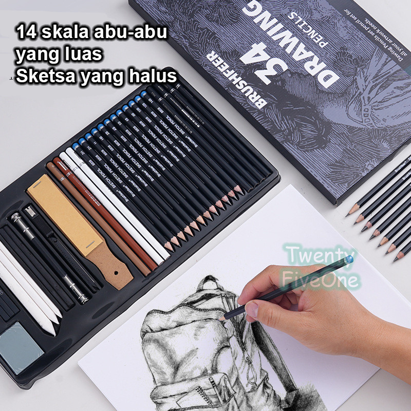 Drawing Pencil Gambar Set 34 PCS Drawing Sketch Pencil Set Tin Box Pensil Gambar