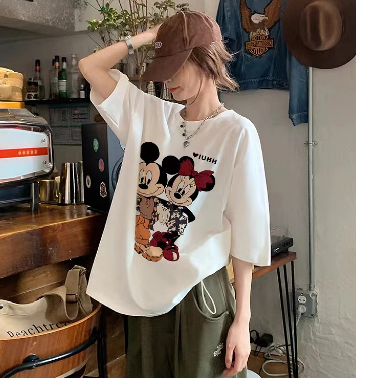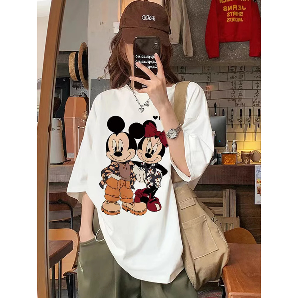 kaos Korean Atasan Wanita/Style Baju Kaos Lucu Wanita Oversize/Cetakan Kartun Mickey T-Shirt
