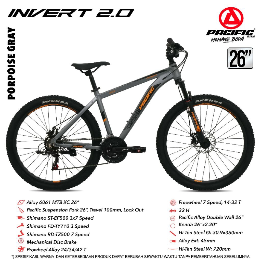 SEPEDA GUNUNG MTB PACIFIC 26 27.5 INCH MTB PACIFIC INVERT 2.0 FRAME ALLOY / VIGILON 2.0 FRAME ALLOY