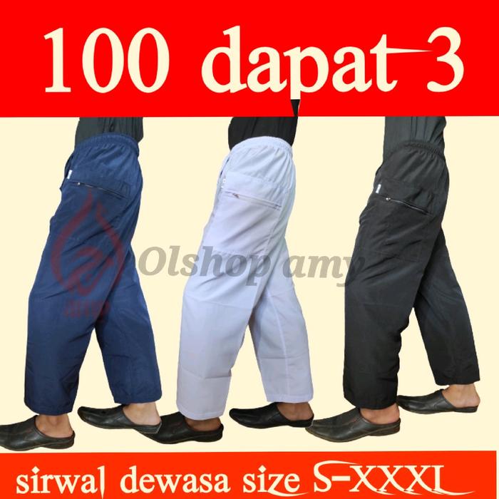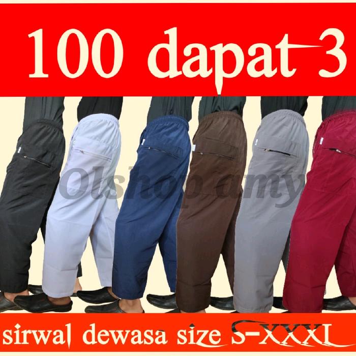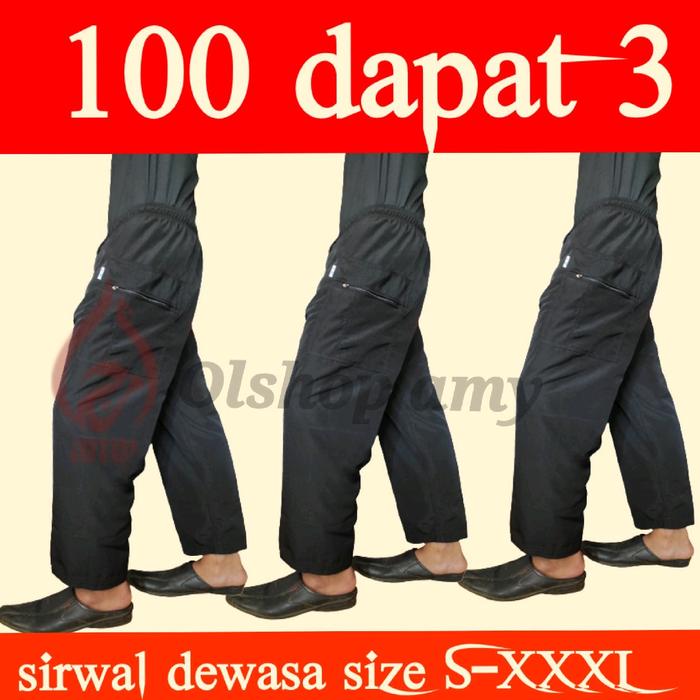 Celana Sirwal 100 Dapat 3 Pcs Pangsi Dewasa Size S- Xxxl Polos Kantong Katun Pria Panjang Tebal Kerja Hitam Cowok Formal