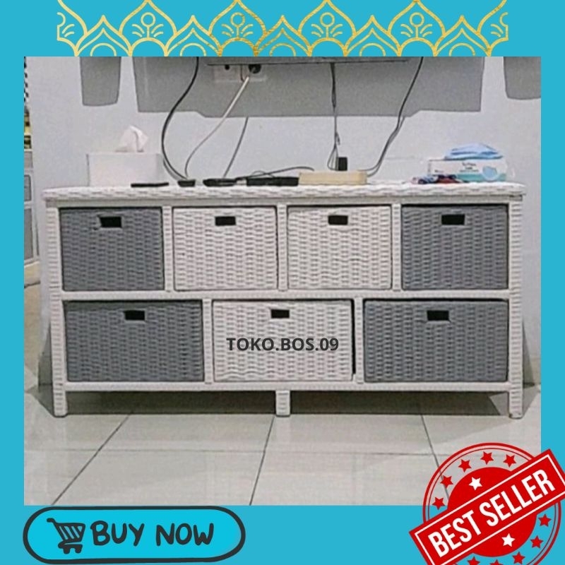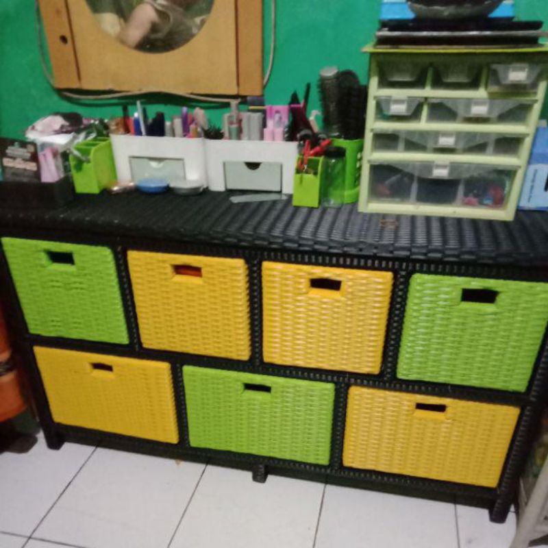 Redy Stok Lemari Rotan Sintetis Laci 7 Samping Meja Tv Rak Buku Susun Lemari Plastik