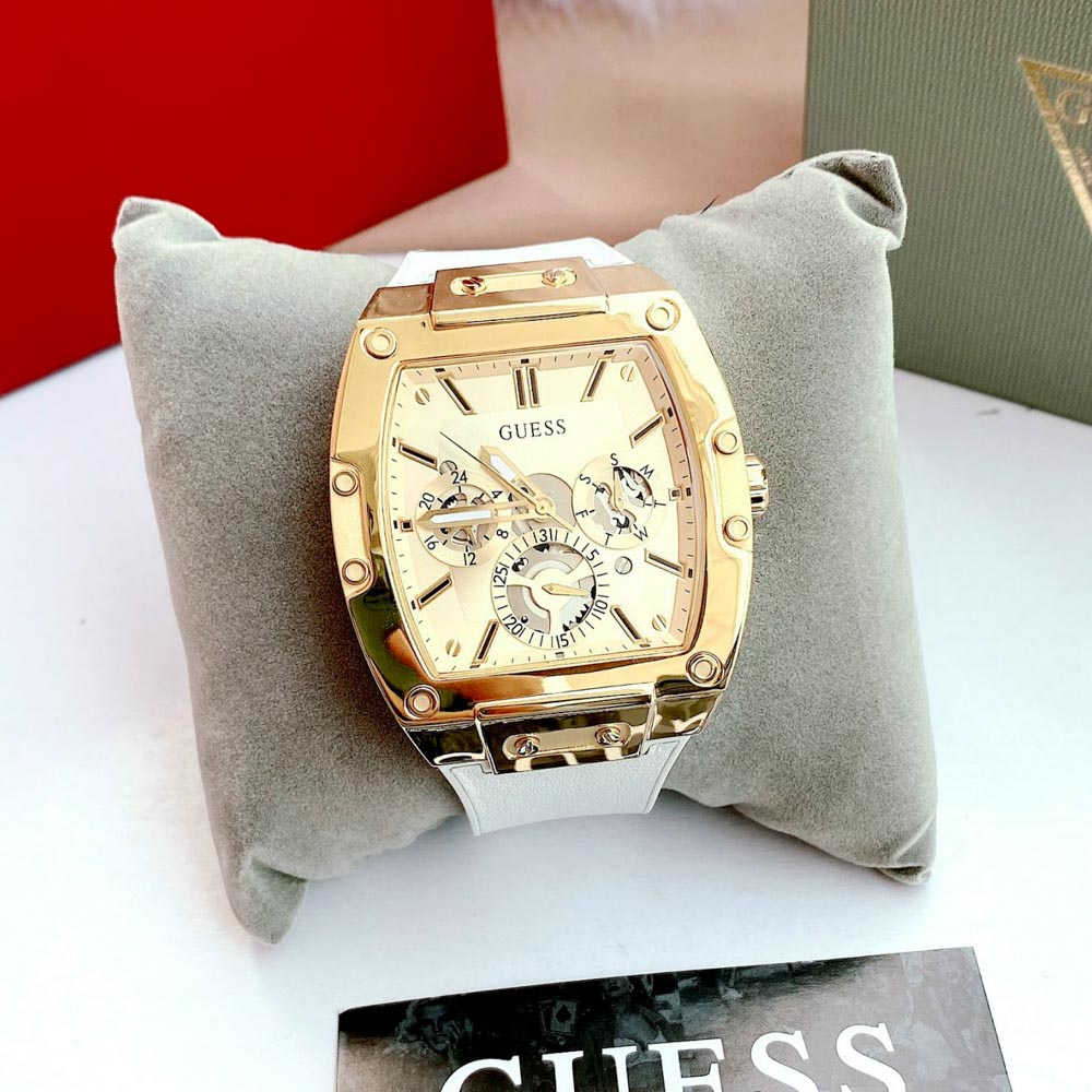 JAM TANGAN PRIA GUESS PHOENIX GW0202G6 GOLD WHITE LEATHER FREE ONGKIR - FREE BOX ORIGINAL
