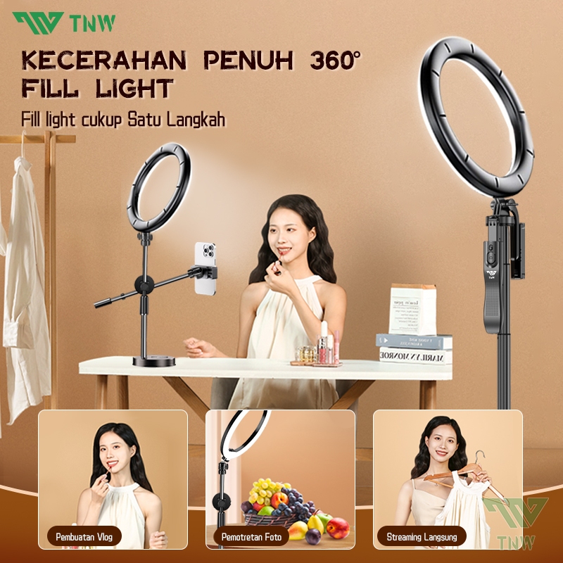 TNW Overhead Phone Stand + Led Ring Light Phone Holder Stand Holder Bracket 360° Lampu Fotografi