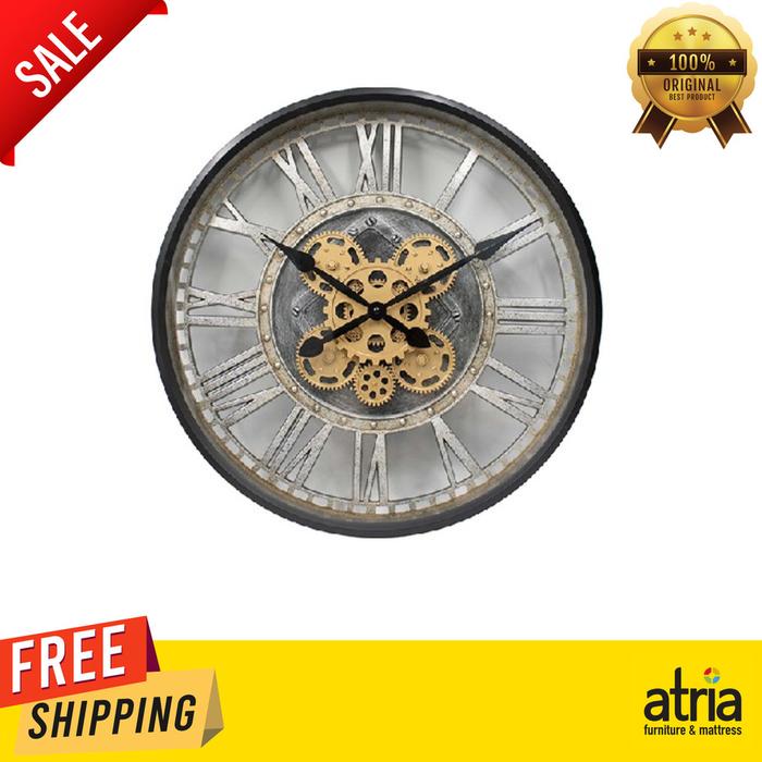 JAM DINDING ATRIA PANAMA DENGAN GEAR 50.8X50.8X6.7CM BLACK BESI PLASTIK