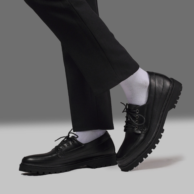 ARF Hugo Black Sepatu Formal Kulit Docmart Pantofel Hitam Pria Wanita Kerja Kantor Kondangan Casual