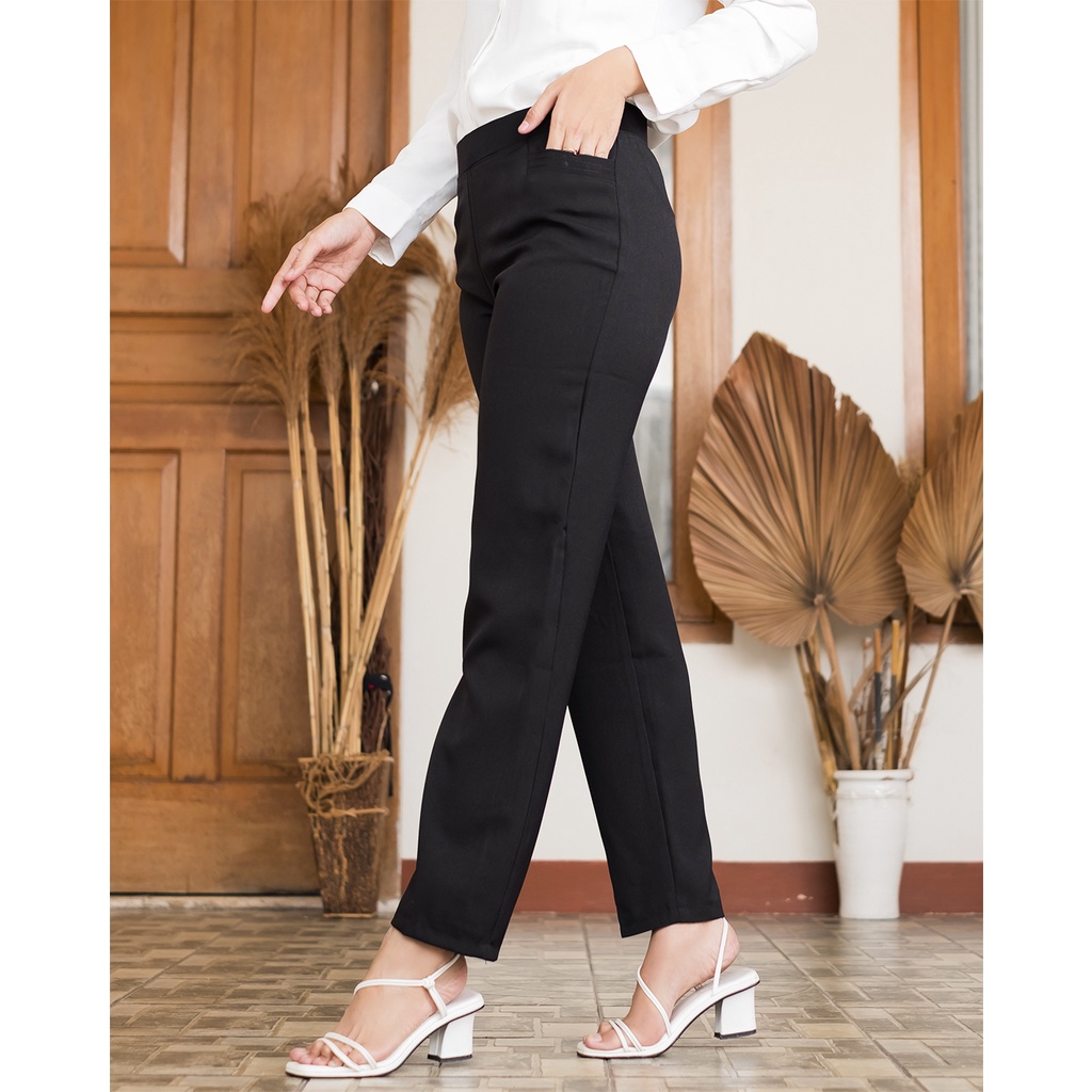 HaymeeIDN - Celana Kantor Wanita Pinggang Karet Celana Kerja Cewek Celana Formal Cewe Sampai Jumbo