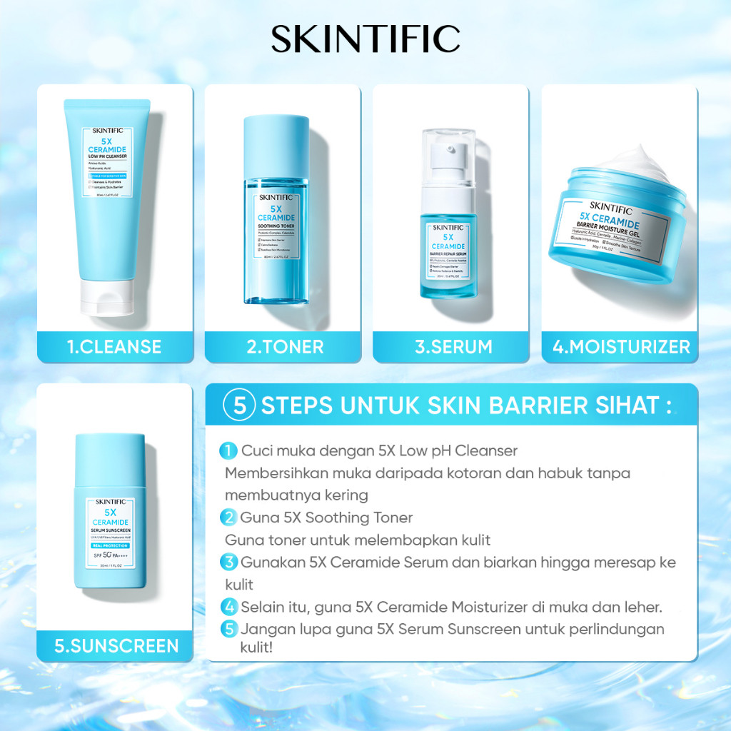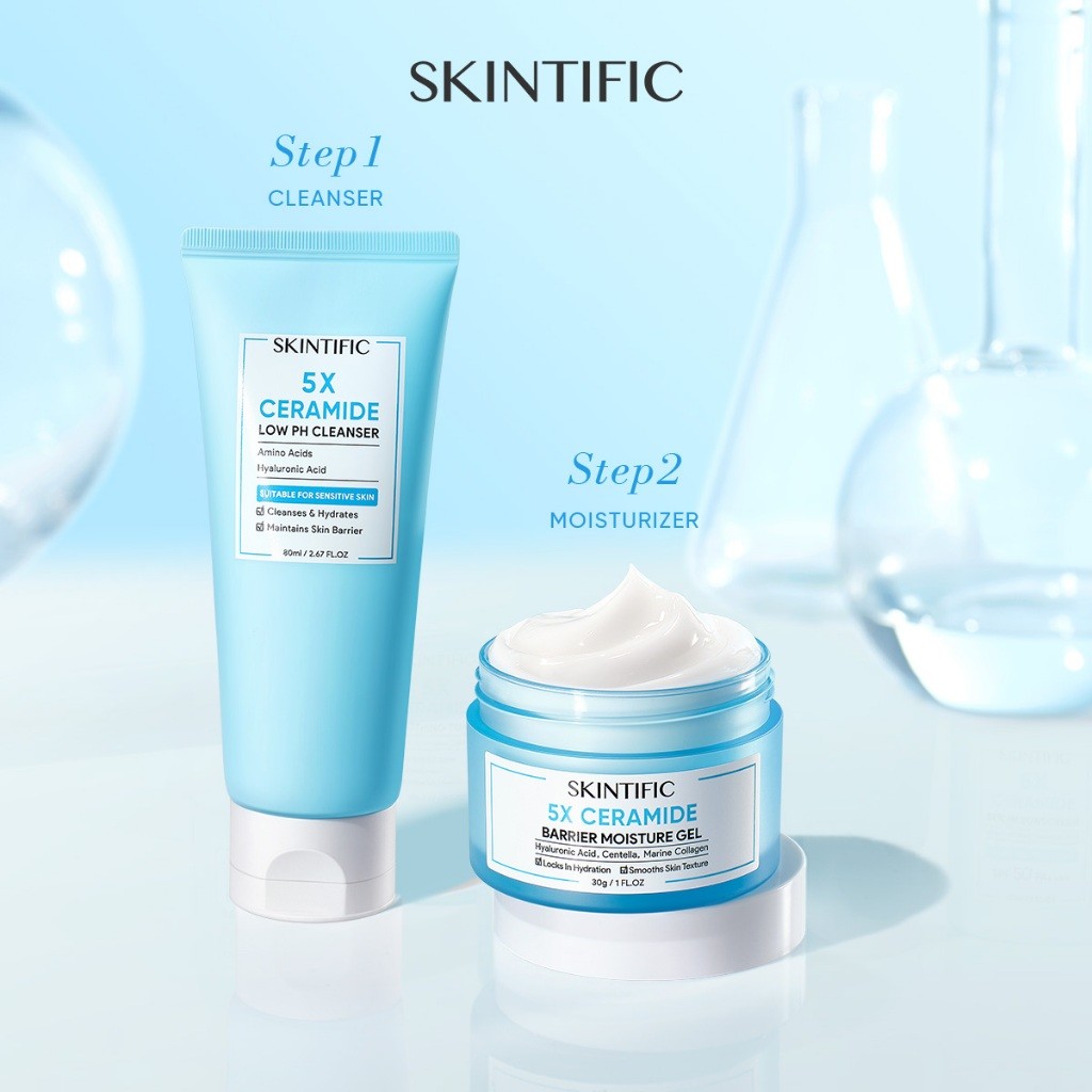 SKINTIFIC Calming Barrier Skincare Set Series | Calm Down 2PCS 5X Ceramide Low pH Cleanser Facial Wash