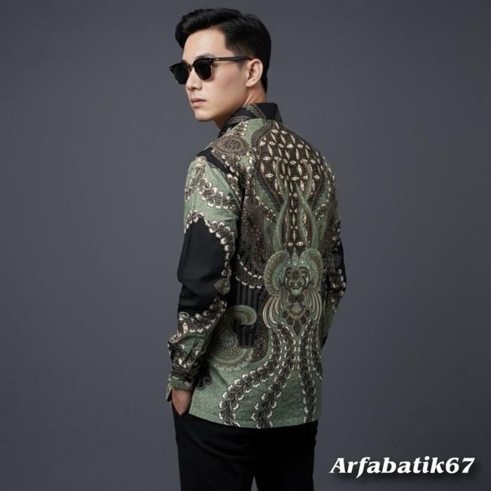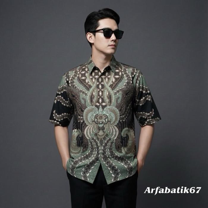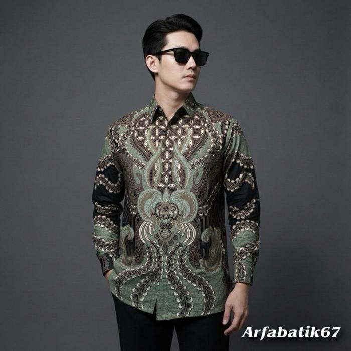 Abimanyu Sage Green Baju Batik Printing Pria Lapis Furing Katun Premium Lengan Panjang Dan Pendek Ready Seragaman By Arf