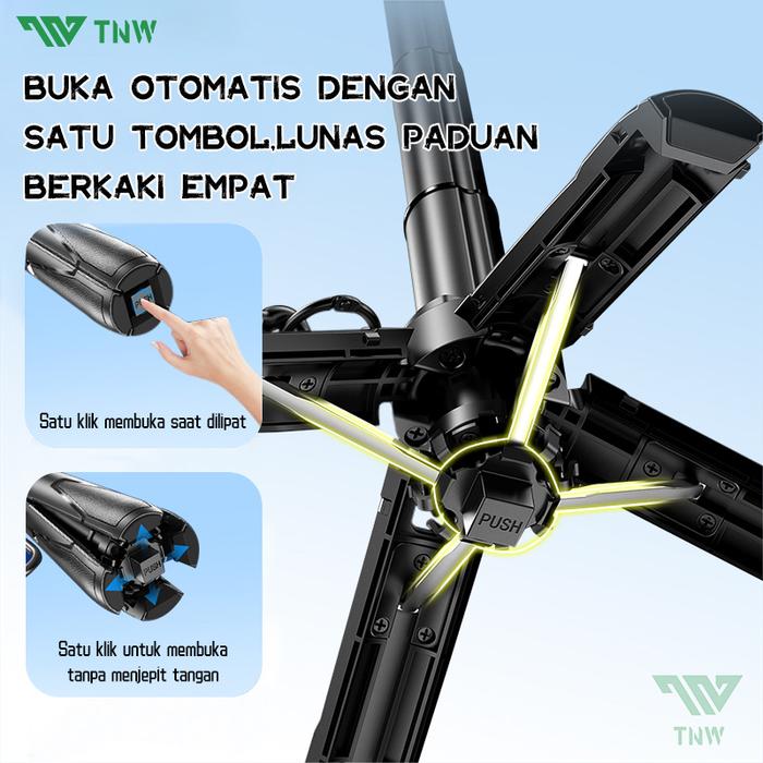 Tnw T26 Extendable Grip Tripod Mini Selfie Stick Remote Control Tripod 3 In 1 Tongsis Tripod Bluetooth Dan Lampu - T26Mi