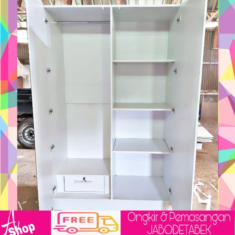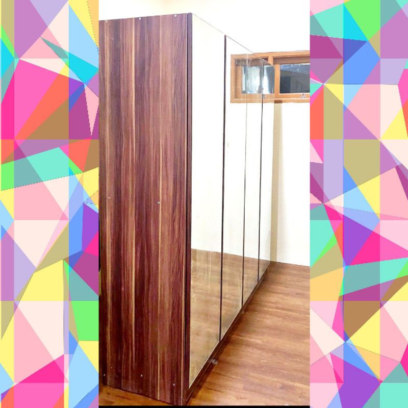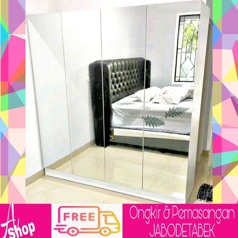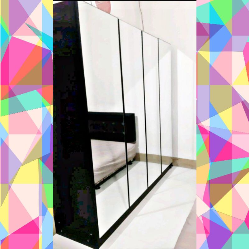 Lemari pakaian 4 pintu jumbo full cermin premium mewah minimalis kokoh papan tebal. Lemari baju murah jumbo. lemari swing door frameless premium.