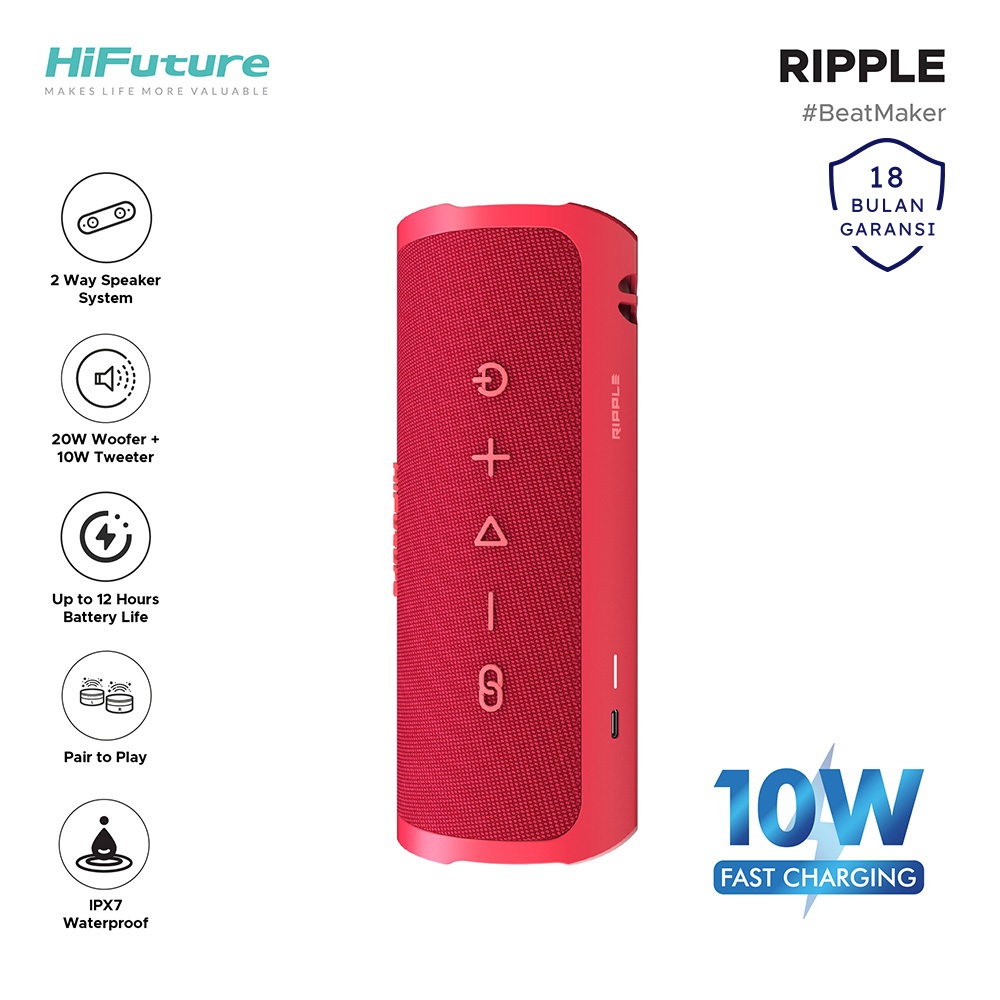 Ripple Portable Bluetooth Speaker 2-Way Speaker System Twin Mode 30W Output TWS Pair to Play IPX7