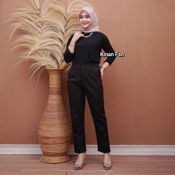 Celana Panjang Wanita Resleting Jumbo Kerja Karet Katun - Hitam, L
