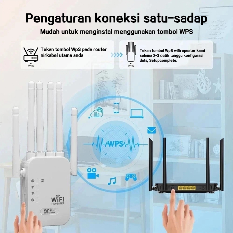 1200Mbps dual-band 5G, penguat sinyal WiFi penguat router, repeater, plug and play, 4 antena eksternal, sinyal penetrasi dinding kuat dan stabil