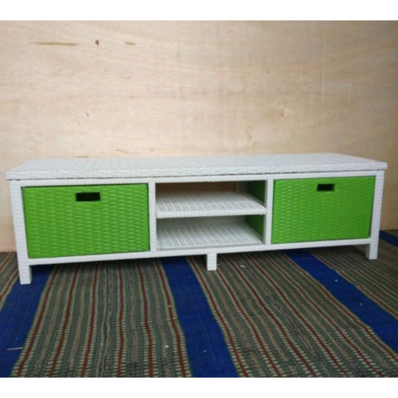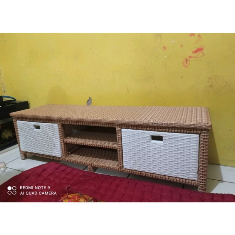 BEST SELLER Lemari Rotan Sintetis 2 Laci Dvd Meja Tv Rotan Sintetis Minimalis Murah