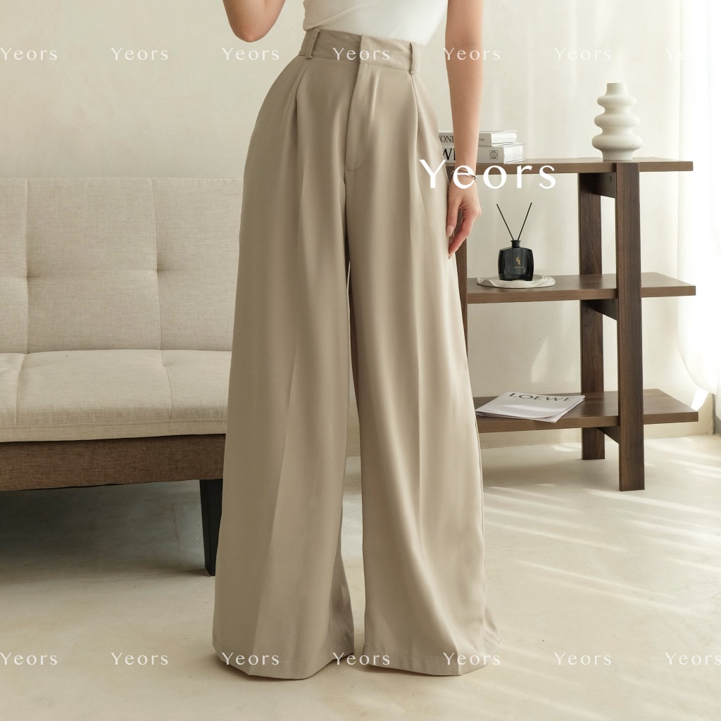 YEORS - Hana Pants - Celana Wide Kulot Polyester Anti Kusut - Trousers Kantor Formal / Casual - Woman Formal Wide Pants - Celana Kuliahan