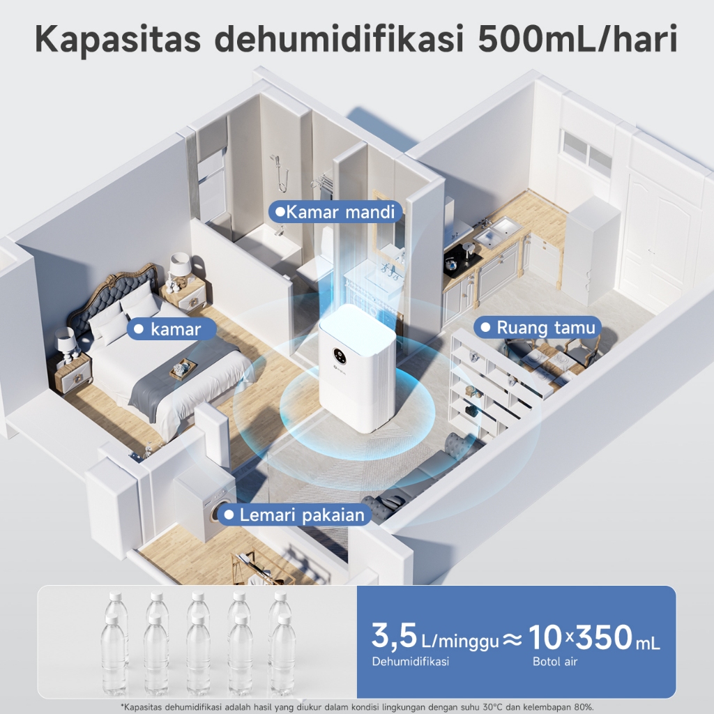 Simplus Dehumidifier 1L Dehumidifikasi Konstan Tidak Bising Pemantau Kelembaban Hemat Daya