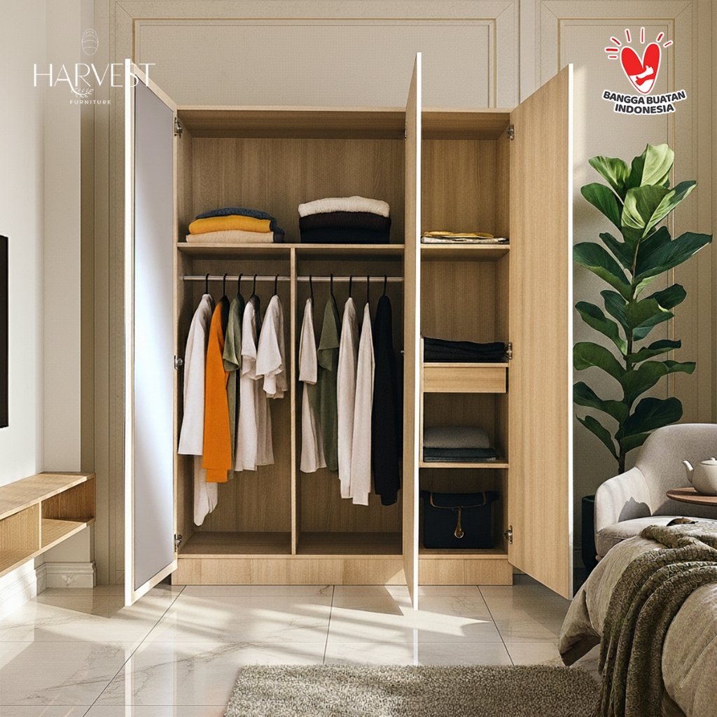 Harvest Furniture Lemari Baju Pakaian 3 Pintu TERMURAH