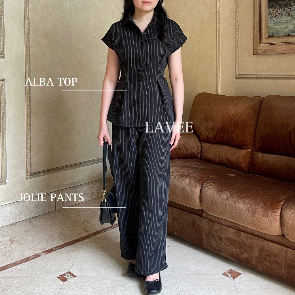 LAVEE - Jolie Pants / Celana Pinstripe Panjang - High Waist Striped Pants