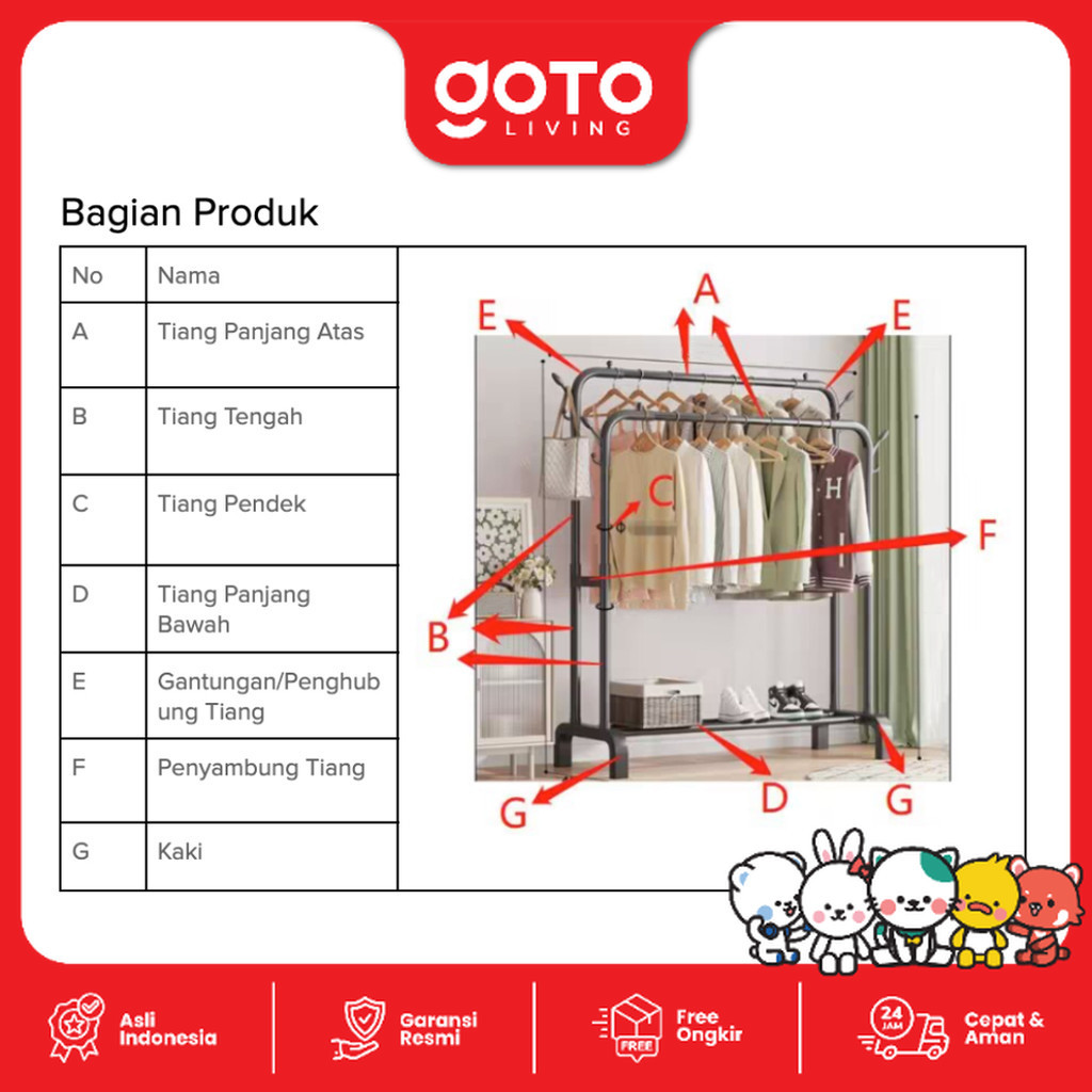 Goto Spiko Stand Hanger Rak Besi Gantungan Baju Pakaian