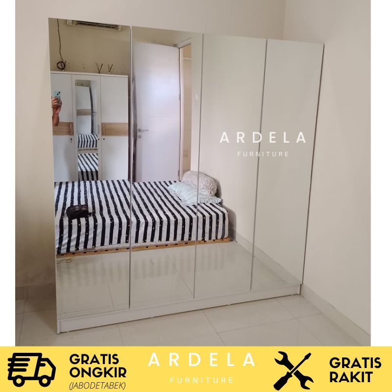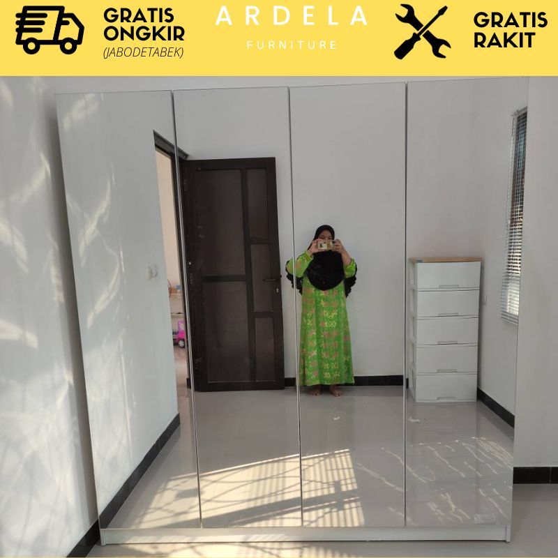 Lemari Pakaian Full Cermin 4 Pintu Design Premium Mewah Murah Terjangkau 4 pintu full cermin mewah minimalis ukuran besar Lemari baju murah jumbo