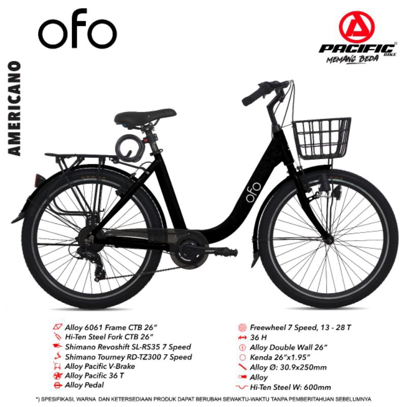 SEPEDA PEREMPUAN REMAJA DEWASA 26 INCH PACIFIC OFO CITY BIKE ALLOY SHIMANO 7 SPEED