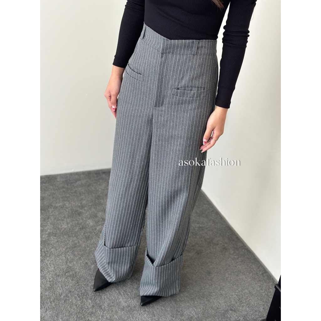 ASOKA Tessa Pants 3140 - Bawahan Celana Panjang Wanita - Trousers Stripe Cullote - Loose Pants High Waist Kekinian