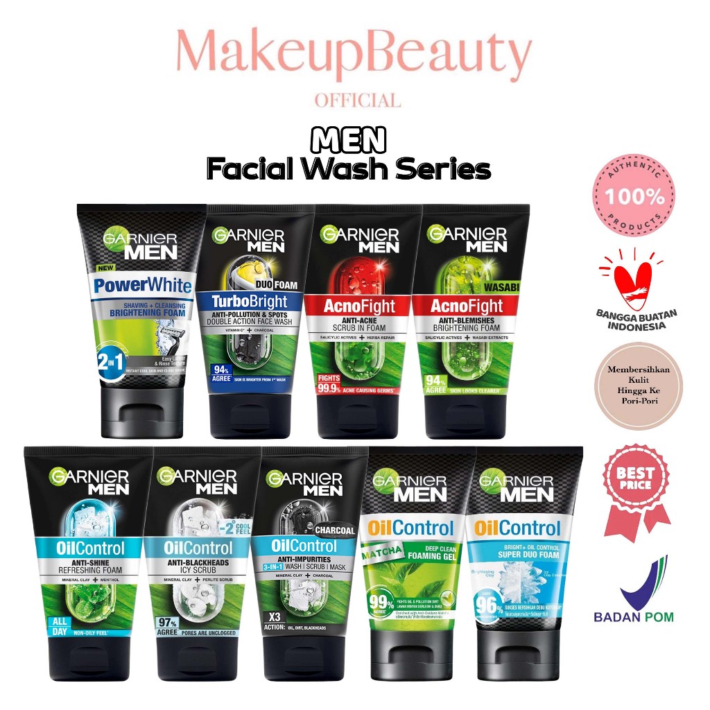 GARNIER MEN Facial Foam | Facial Scrub | Face Wash - Turbolight/ Oil Control/ Acnofight