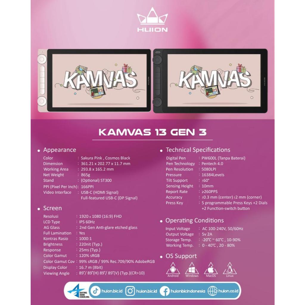 Huion Kamvas 13 Gen 3 Pen Tablet Display 13" FHD 120 PERSEN sRGB