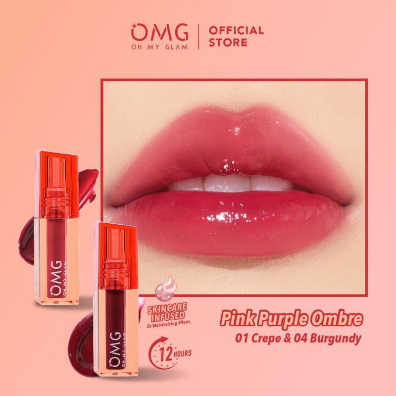 OMG OH MY GLAM Glassy Lip Tint 2g - Lip Tint Warna Intense Tahan 12 Jam, Skincare Infused