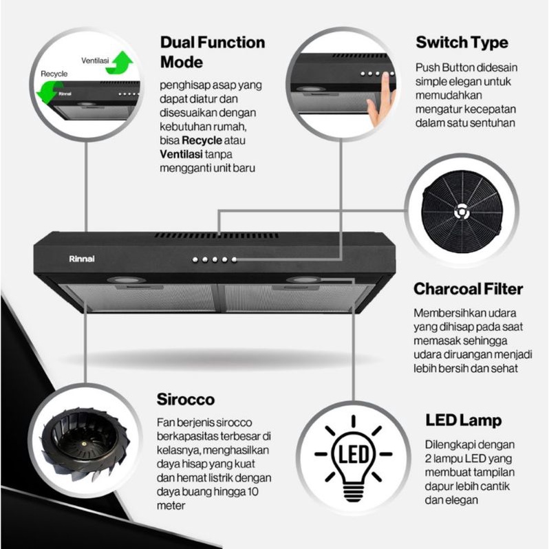 COOKER HOOD RINNAI RH 126B / PENGHISAP ASAP RINNAI RH 126 B 60cm NEW ORI