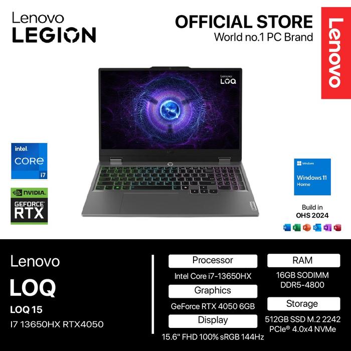 Lenovo Loq 15Irx9 I7 13650Hx Rtx4050 6Gb/ 16Gb 512Gb W11+Ohs+M365B 15.6Fhd 144Hz 100Srgb 4Zrgb - Laptop, 16Gb/512Gb