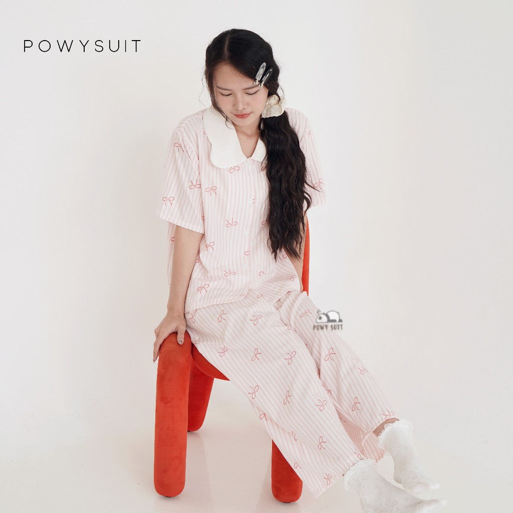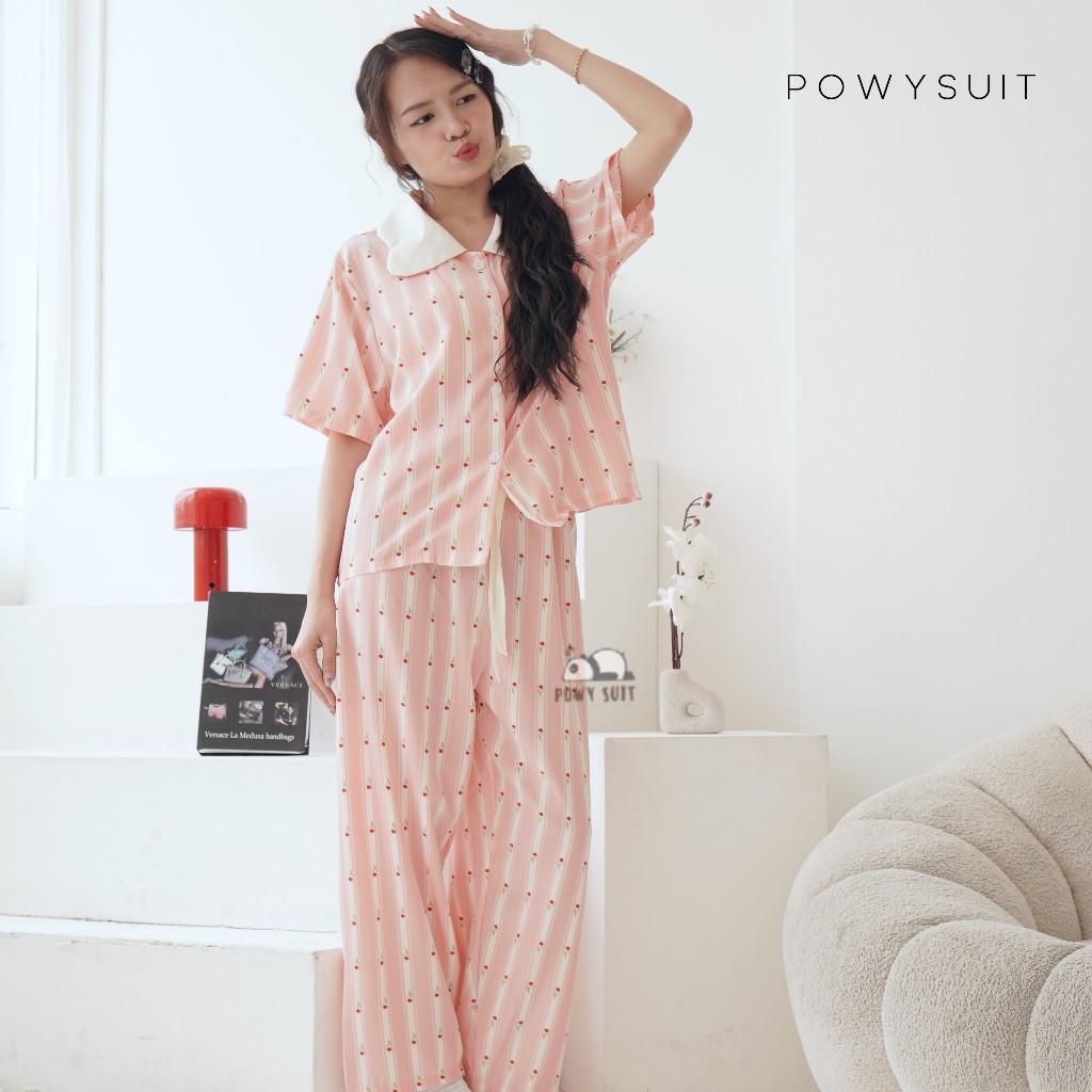 ST Rabbit Piyama Powysuit Satin Sutra Baju Tidur Wanita Lengan Pendek Celana Panjang lembut Setelan