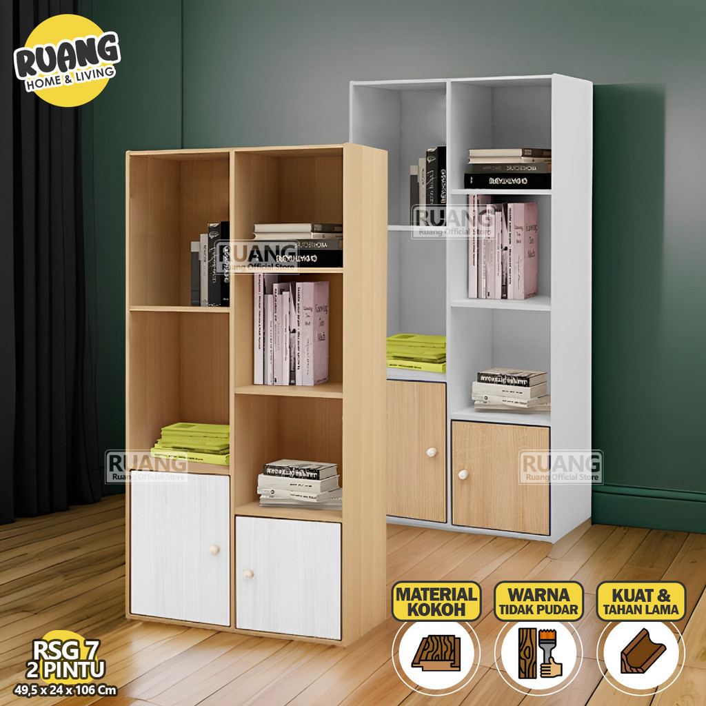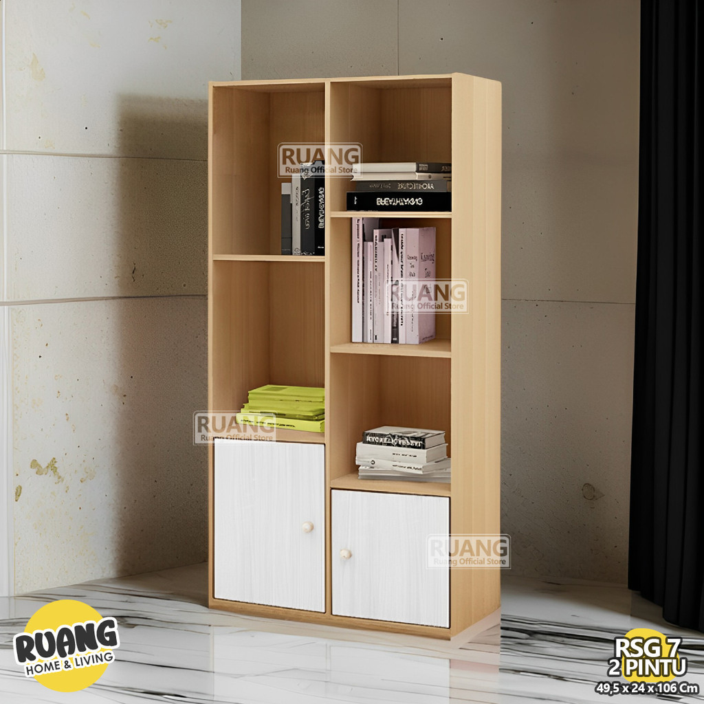 RSG 7 PINTU - Rak Serbaguna dengan Book Rack Rak Serbaguba 7 Susun Kayu Murah Lemari Buku