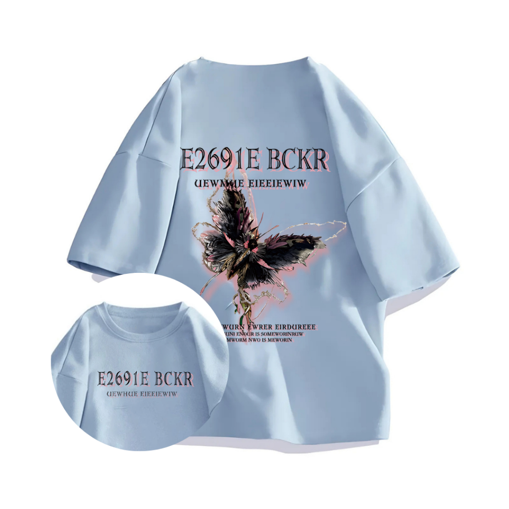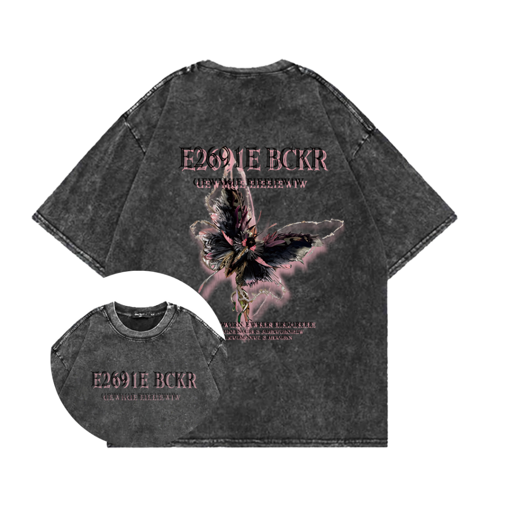 Jessica Washed Kaos Oversize Lengan Pendek T-Shirt Color Butterfly ghost Katun Murni Retro Style Baju Atasan Wanita Terbaru