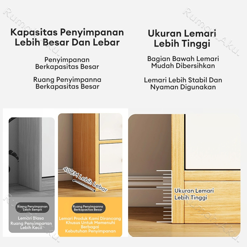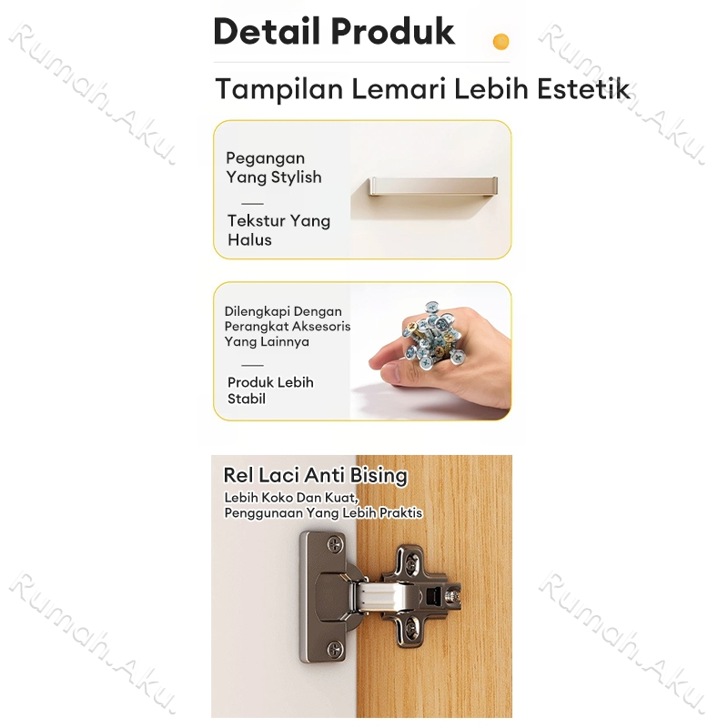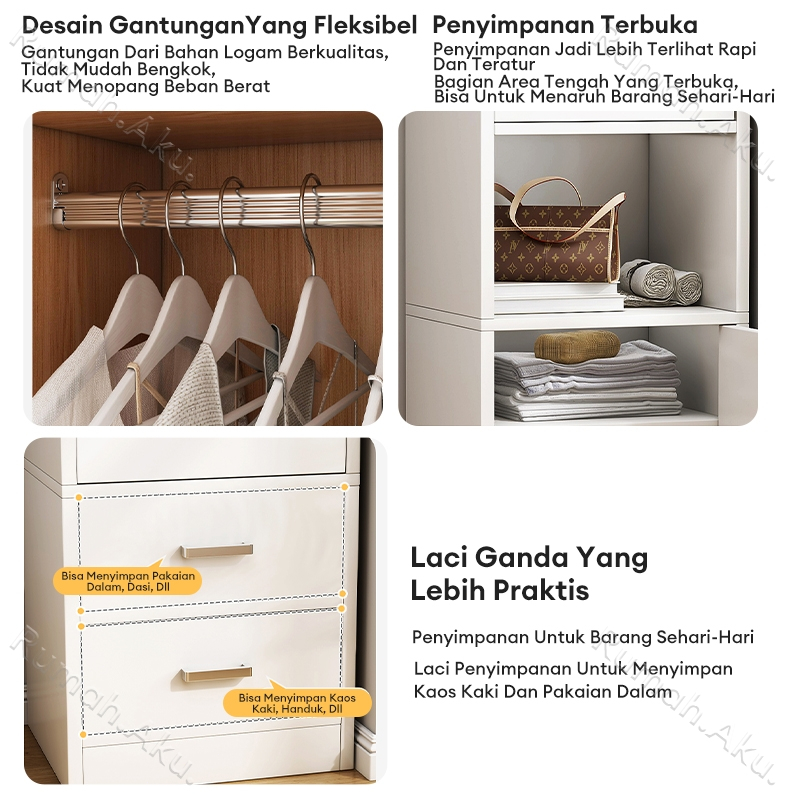 Kayu:2 Pintu 6 kisi, Putih:1 Pintu 2 Laci, Kayu:1 Pintu 2 Laci