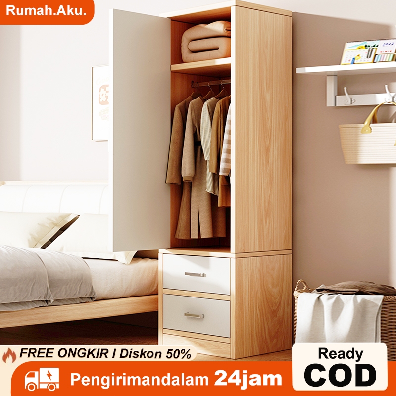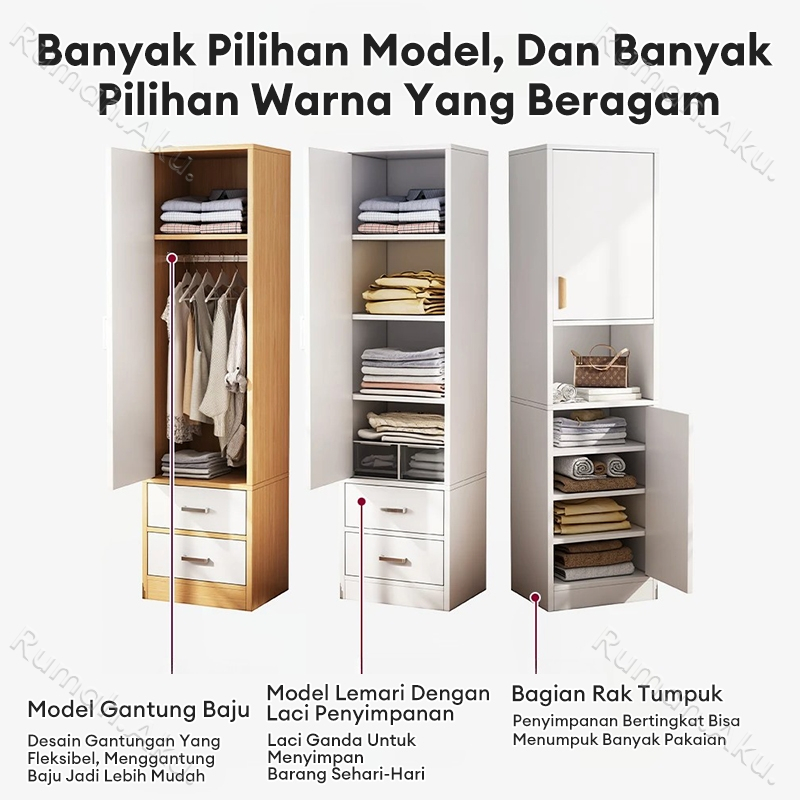 Lemari Pakaian Dengan Laci Ganda Lemari Baju Gantung Lemari Laci Penyimpanan 40X40X180CM